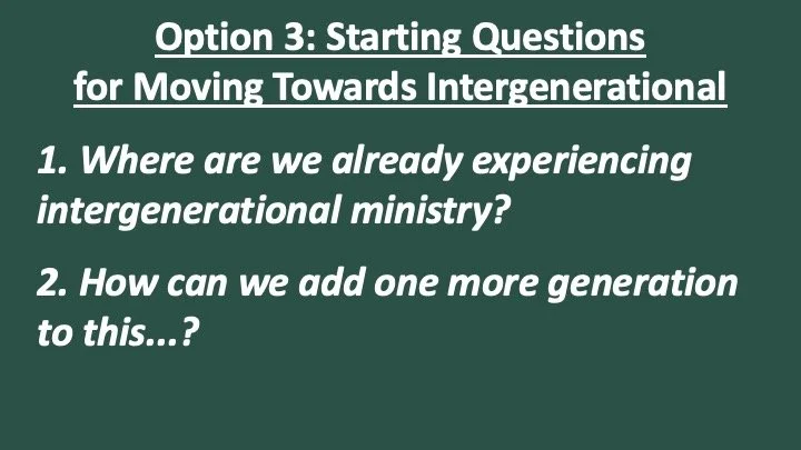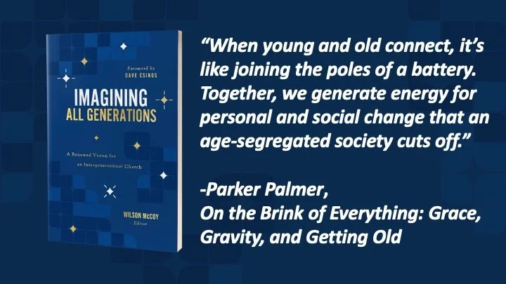 The intergenerational move is when we take those pews and rows and we turn them towards each other. We intentionally find ways to help different age groups interact with each other, get to know each other, and....to see each other and see as the other sees.