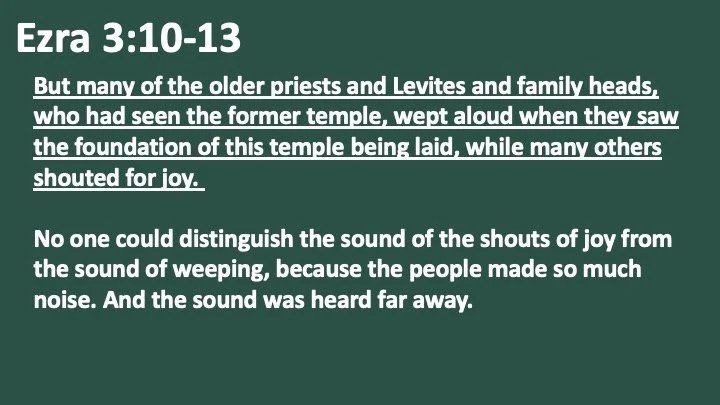 The people of God are together in this shared moment of worship and react differently. Some of joyous, but the older ones are weeping. Why? Because they had seen some things. These older exiles had seen some things the younger ones had not and it impacted their response.
